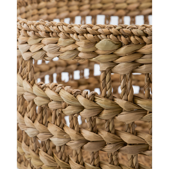 Lisää ripauksen luonnollista eleganssia kotiisi näillä käsintehdyillä meriruohokoreilla. Ne sopivat erinomaisesti pyyhkeiden, peittojen ja tyynyjen säilytykseen, ja niiden avoin punottu kuvio yhdistää toiminnallisuuden tyylikkääseen estetiikkaan. Jokainen kori on ainutlaatuinen ja lisää viehättävää, maalaismaista tunnelmaa mihin tahansa huoneeseen.- Käsintehdyt meriruohokorit - Kahden koon sarja - Luonnollinen väri - Avoin pajukuvio Korosta säilytysratkaisujasi näillä kauniisti käsintehdyillä koreilla.