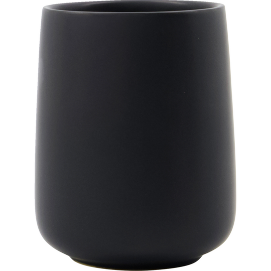 Tämä talon lääkäri keraaminen lasi tekee kylpyhuoneestasi paremman ilman suuria ponnisteluja. Musta väri ja yksinkertainen muotoilu lisäävät ajatonta, minimalistista kosketusta kylpyhuoneeseesi. Käytä hammasharjan ja hammastahnan lasia. Tai osta kaksi ja käytä toista meikkiisi. Yksinkertainen ja tehokas tapa luoda rauhallinen, johdonmukainen tunnelma.