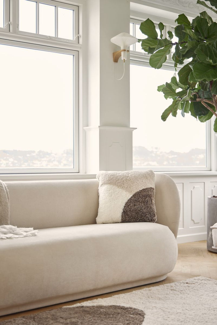 Tämä kolmenvärinen tyyny on ehkä esine, joka voi laittaa jäätymisen sisustukseen. Tämä neliömäinen turkistyyny on valmistettu Uuden -Seelannin sertifioidusta lammasnahkaisesta turkista. Omassa ompelussa he ompelevat lammasnannan kauniisti kolmiväriseen kuvioon, joka antaa tyynylle tyylikkään ja erilaisen ilmeen.