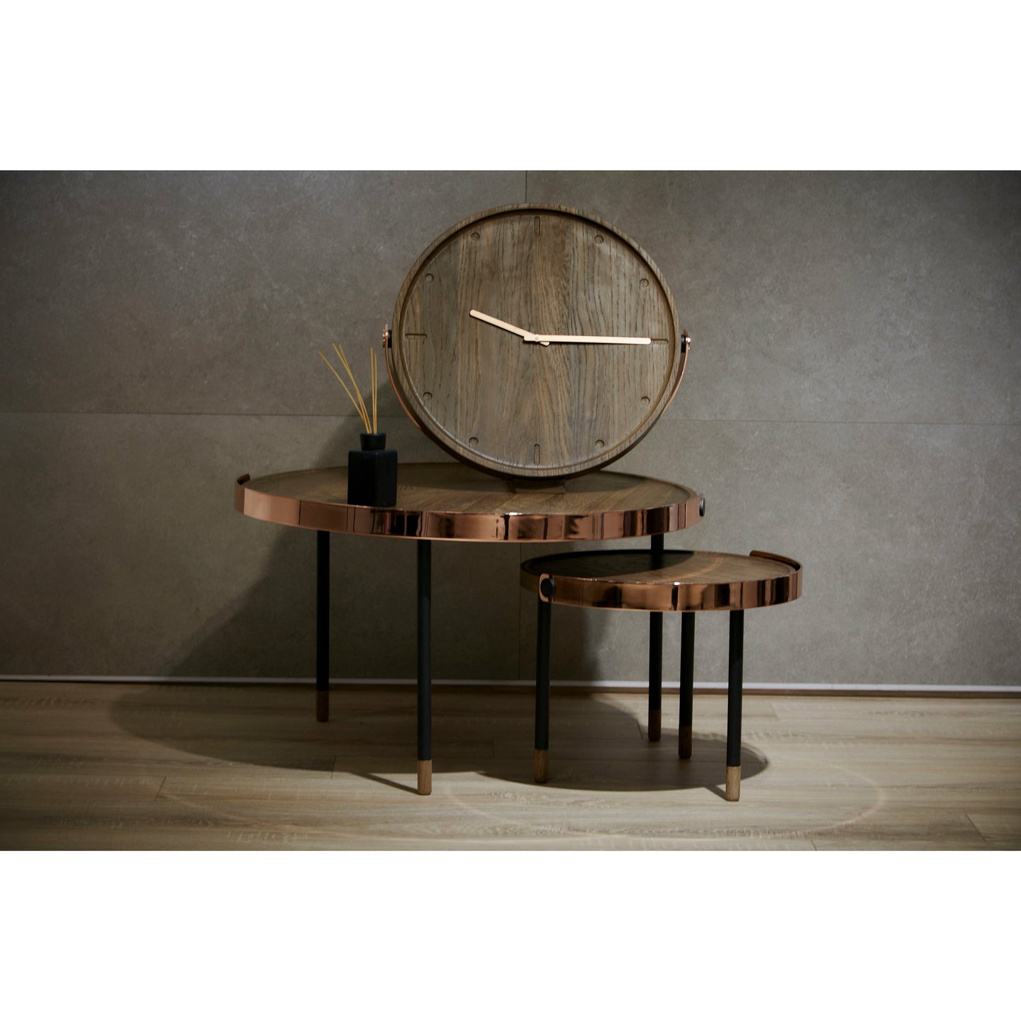 Pöydät ovat saatavana kahdessa maalissa; Joko vahainen tammi, jolla on kiiltävä messinki- tai savustettu tammi elävällä kuparin reunalla.