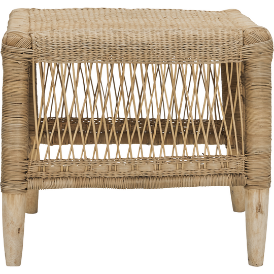 Tämä jakkara, joka on valmistettu eukalyptustresta ja käsin -kudotusta rottinista, lisää ilmavan ja monimutkaisuuden mihin tahansa huoneeseen. Jokainen jakkara on ainutlaatuinen, mikä antaa luonnollisen tyylikkyyden ja yksilöllisyyden sisustuksellesi.